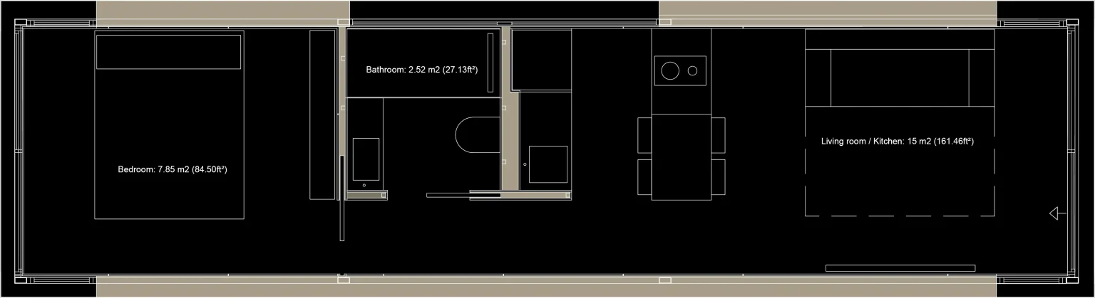 KEU NOMAD ofrece 33 m² de espacio, construidos para soportar entornos remotos y al mismo tiempo brindar una experiencia arquitectónica refinada.
